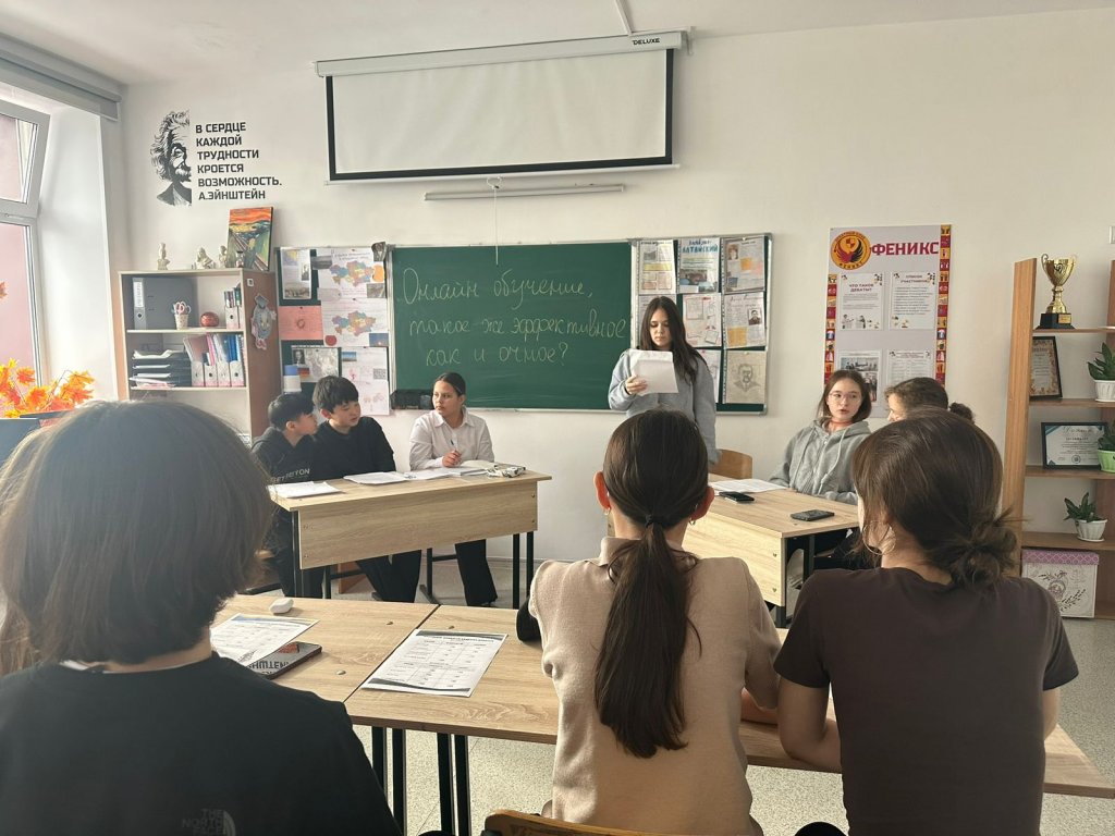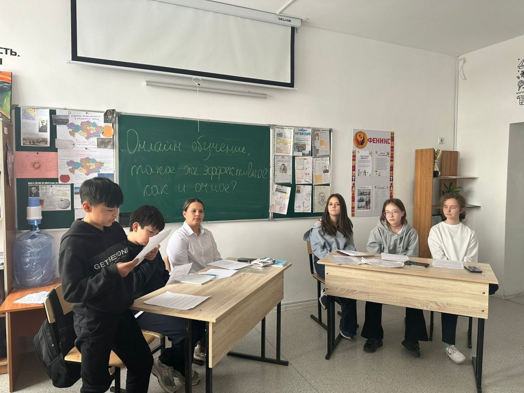 13 қараша күні біздің мектепте 7-сынып оқушылары арасында «Онлайн оқыту дәстүрлі оқу сияқты тиімді ме?» тақырыбында дебаттар өтті.