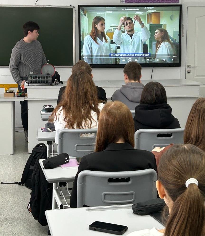 Он приехал не просто в гости, а с важной миссией — профориентация для школьников. Ребята из первых уст узнали, как выглядит студенческая жизнь, какие направления есть в институте, какие профессии востребованы в нефтяной отрасли и какие возможности открываются после поступления.