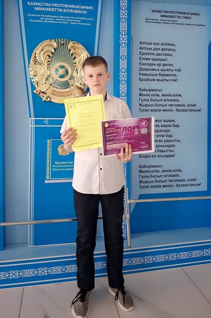 - 4Б сынып оқушысы Раменская Софья, ІІІ дәрежелі диплом (жетекшісі – С.Төлеген);