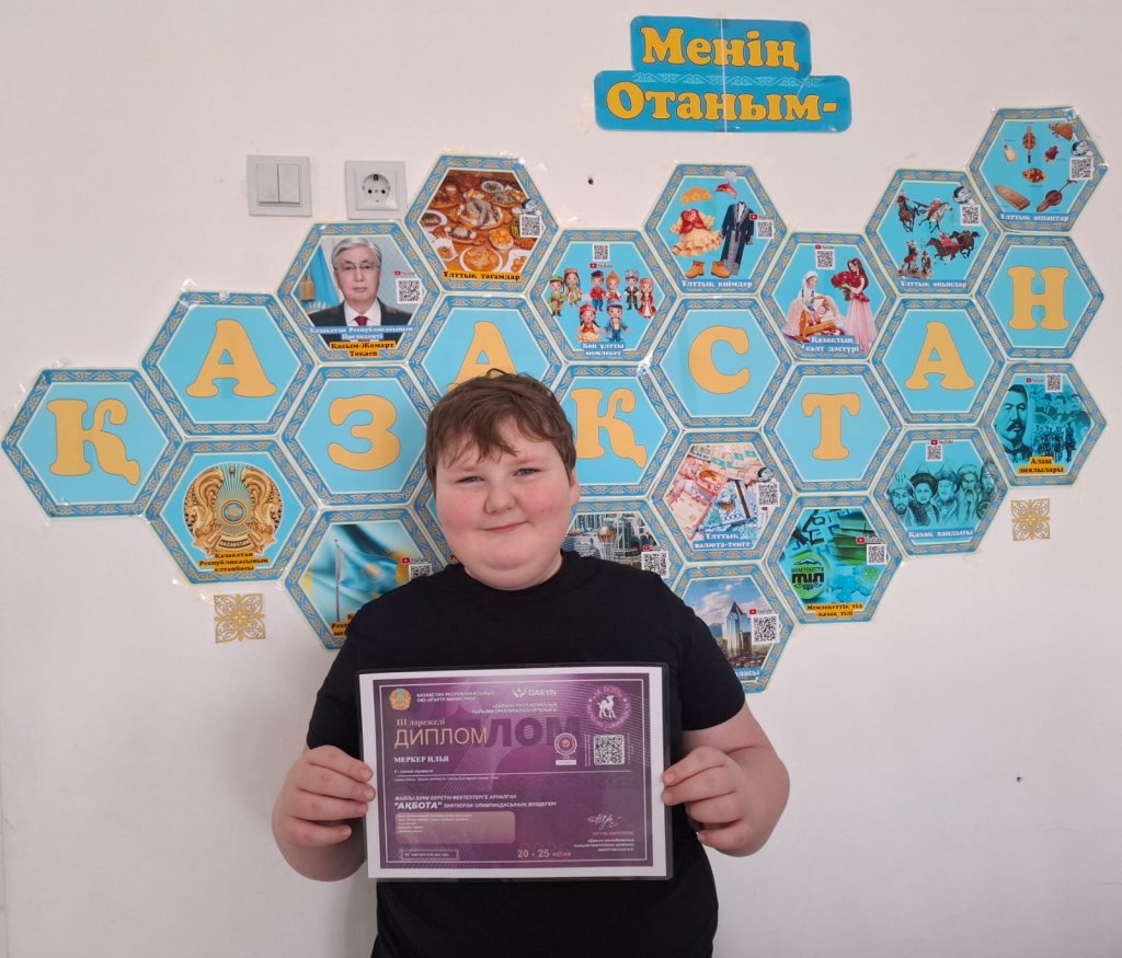 - 6-сынып оқушысы Меркер Илья, ІІІ дәрежелі диплом (жетекшісі – Д.Б.Утепбаева).