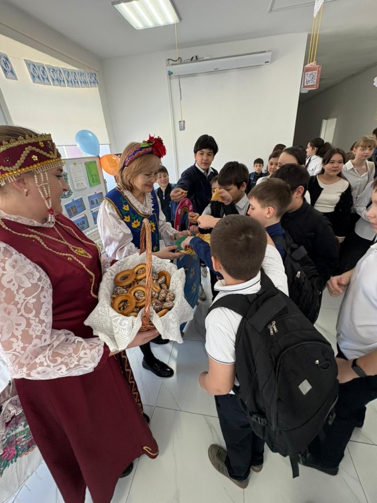 Онкүндіктің ашылу күні орыс тілі мен әдебиеті пәні мұғалімдері оқушыларды тақырыптық бұрышқа шақырып, көңілді халық әуендерімен бірге құймақ, тоқаш және тәттілер ұсынды.